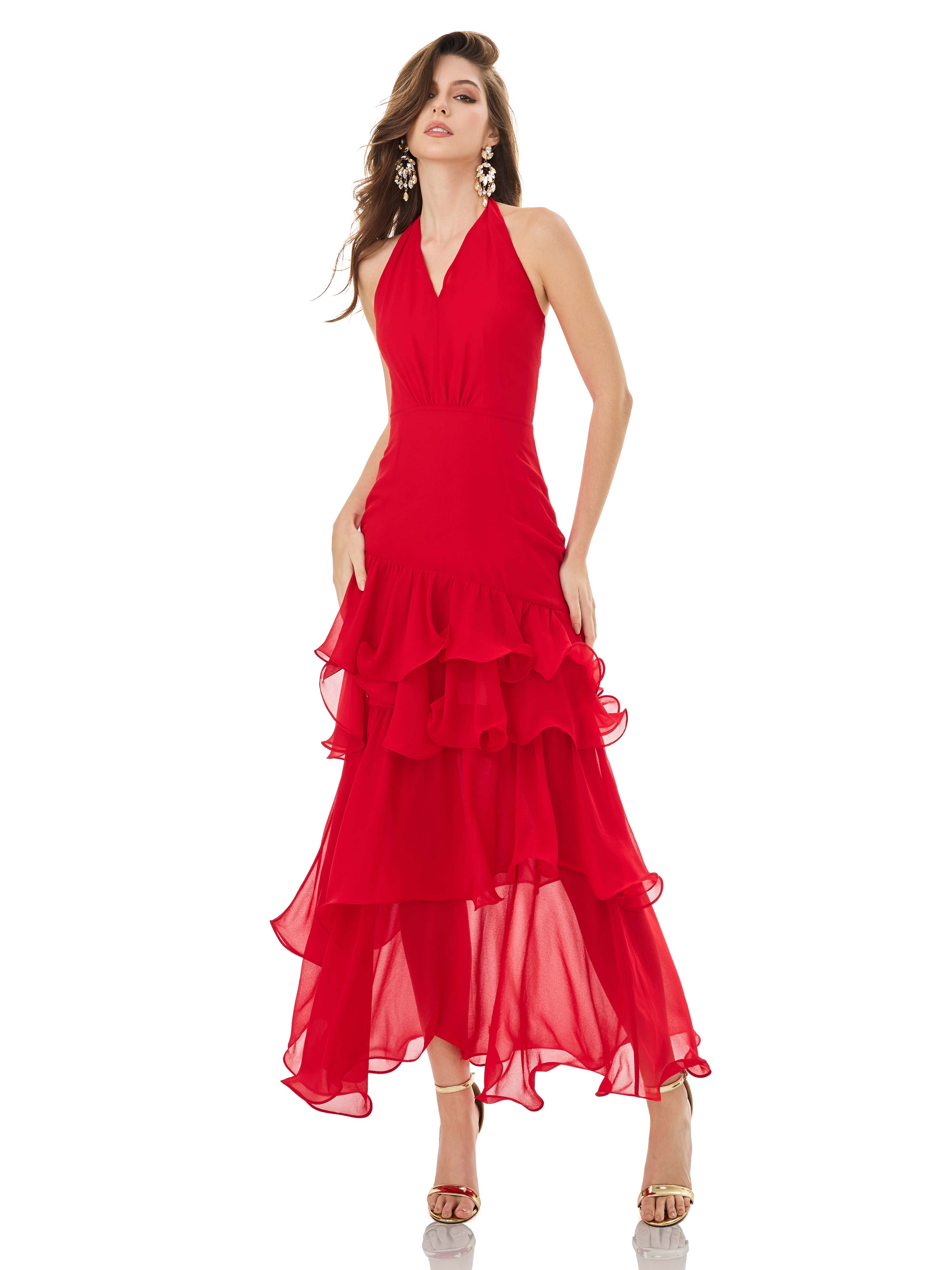 Own the room in vibrant red. This stunning dress flows with you, making you feel unstoppable for your special moments.