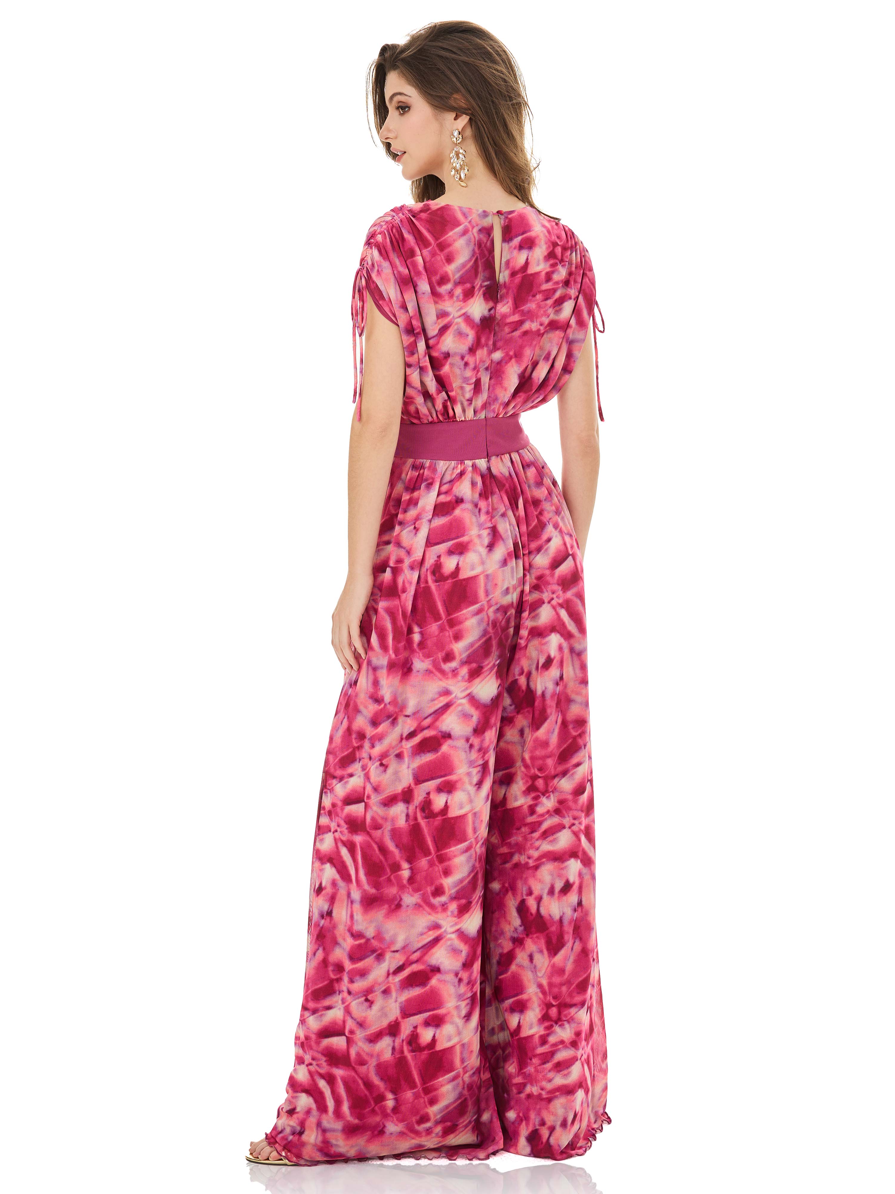 Feel the freedom. This vibrant printed jumpsuit flows beautifully with every step, making you feel effortlessly confident.