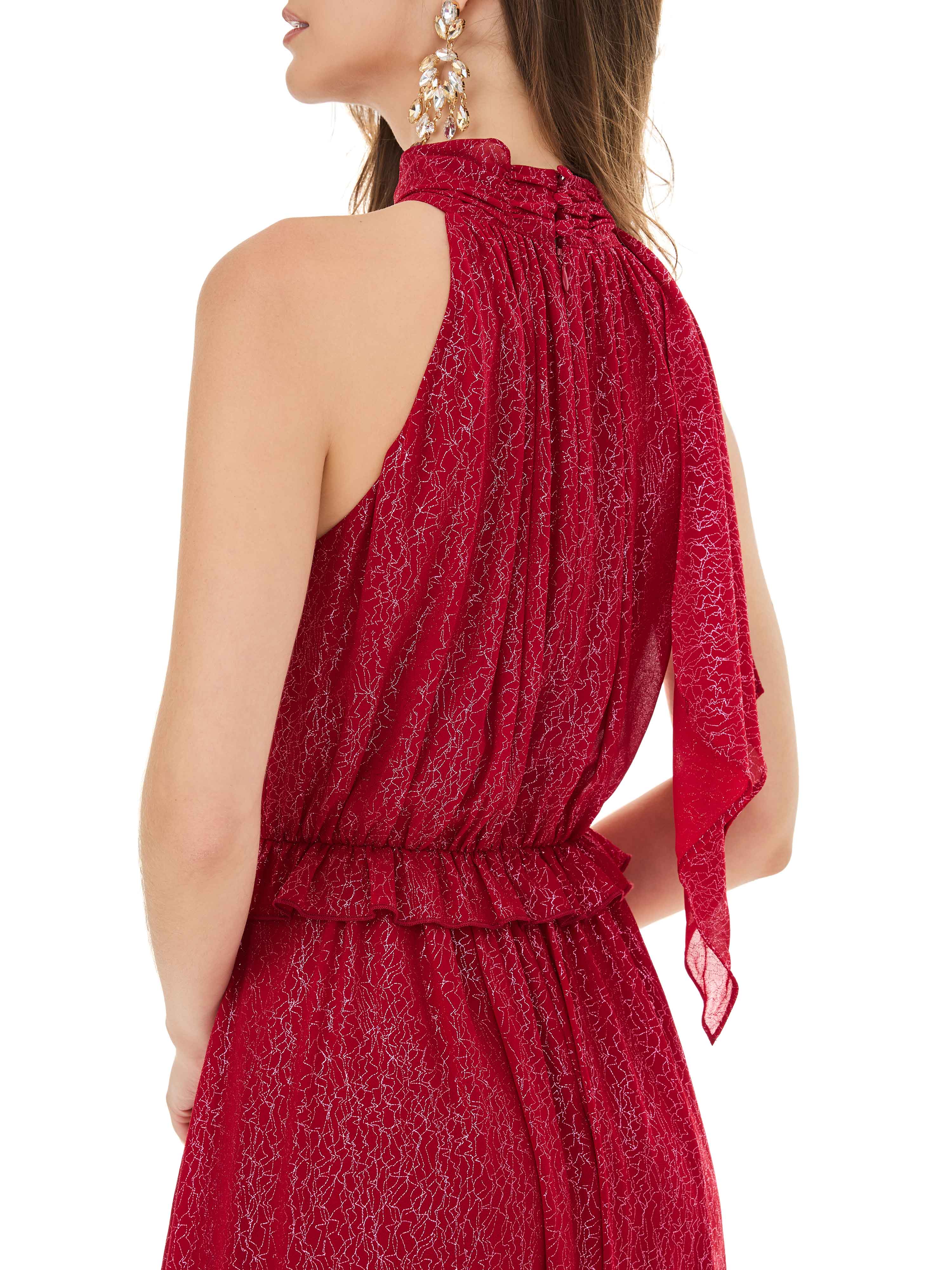 Light up your moment. This vibrant red shimmering dress flows beautifully, making you feel radiant and unforgettable.