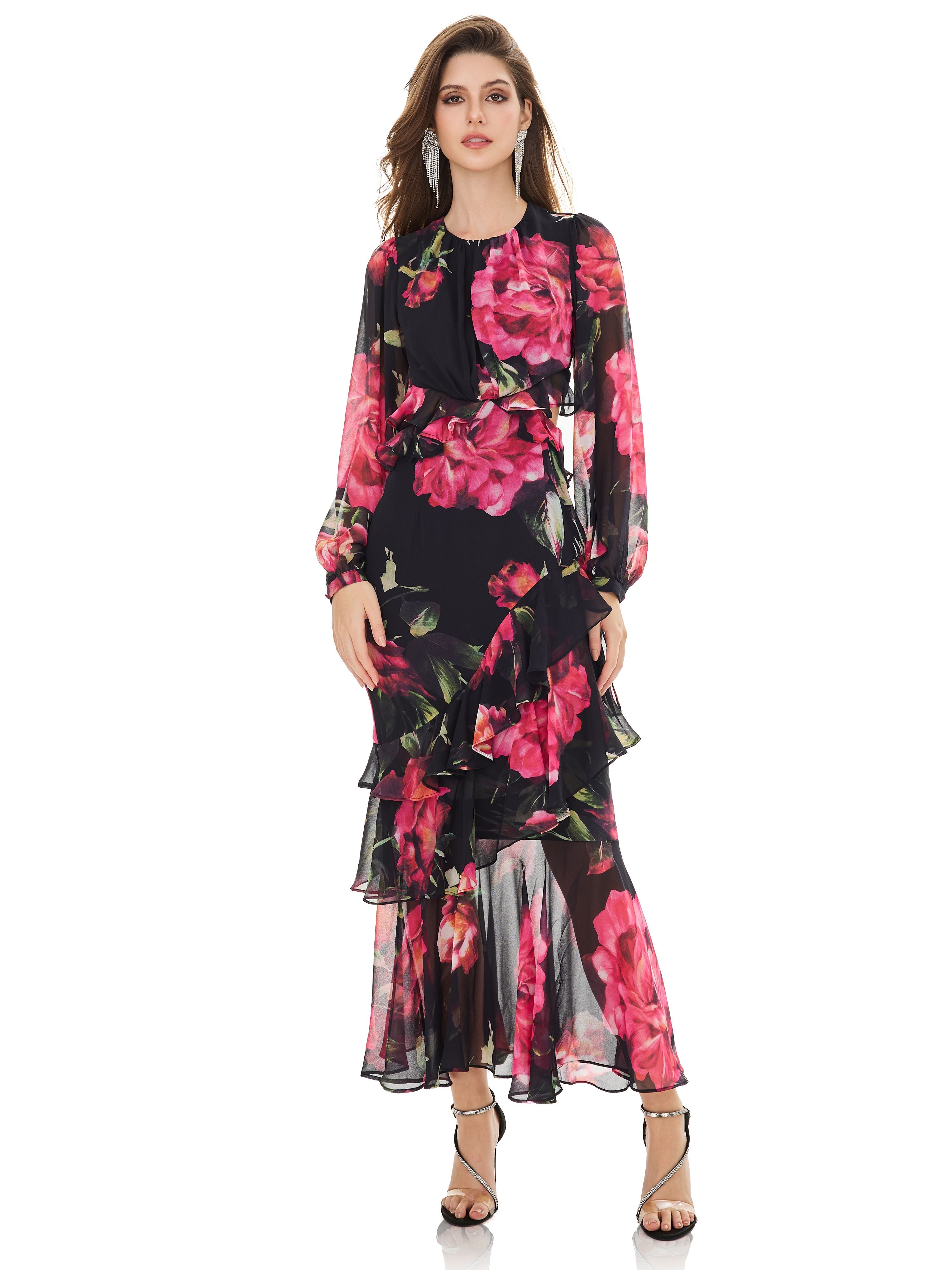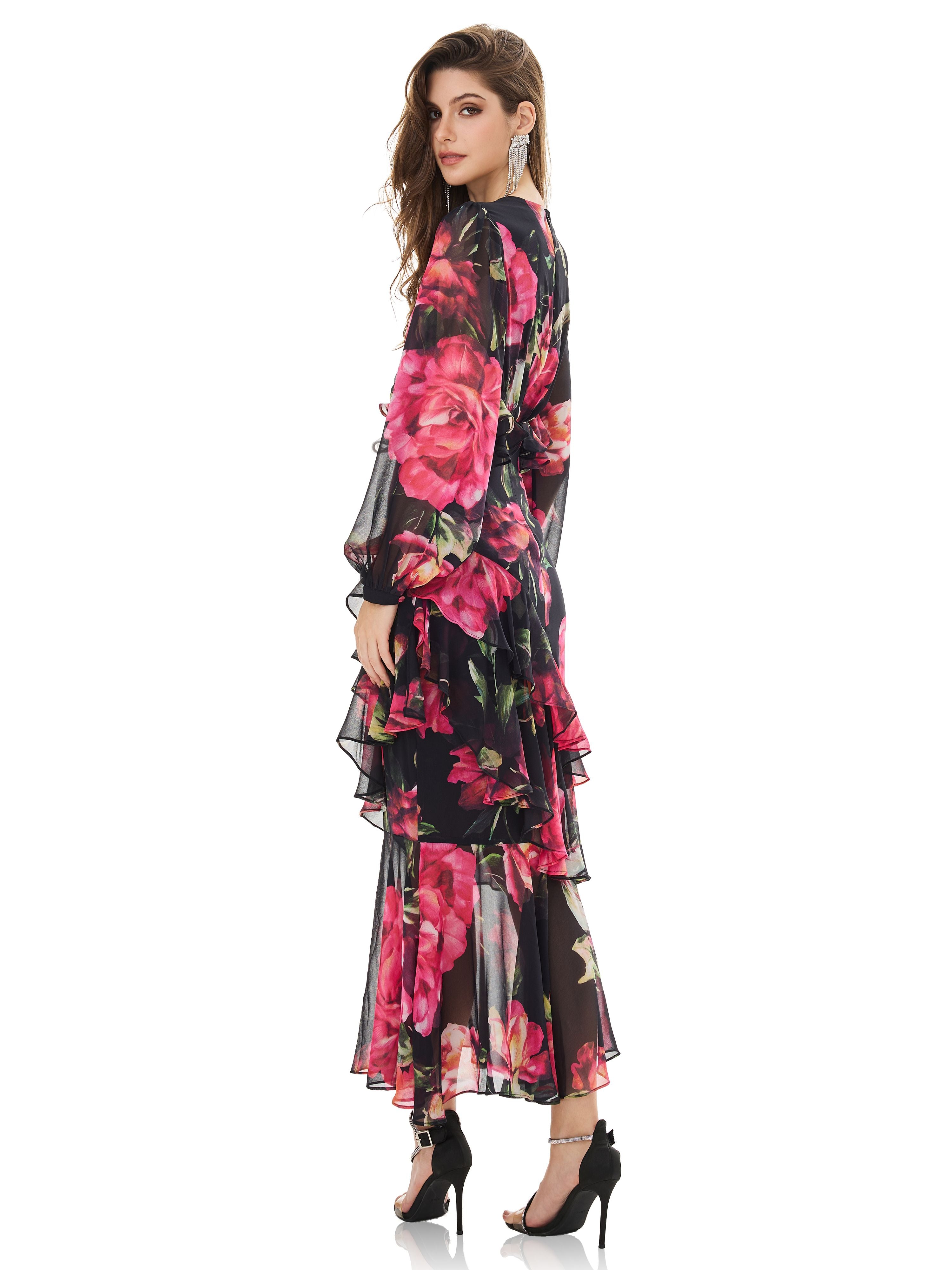 Wear your romance. This dreamy floral dress, flowing with every step, is crafted for moments you'll cherish forever.