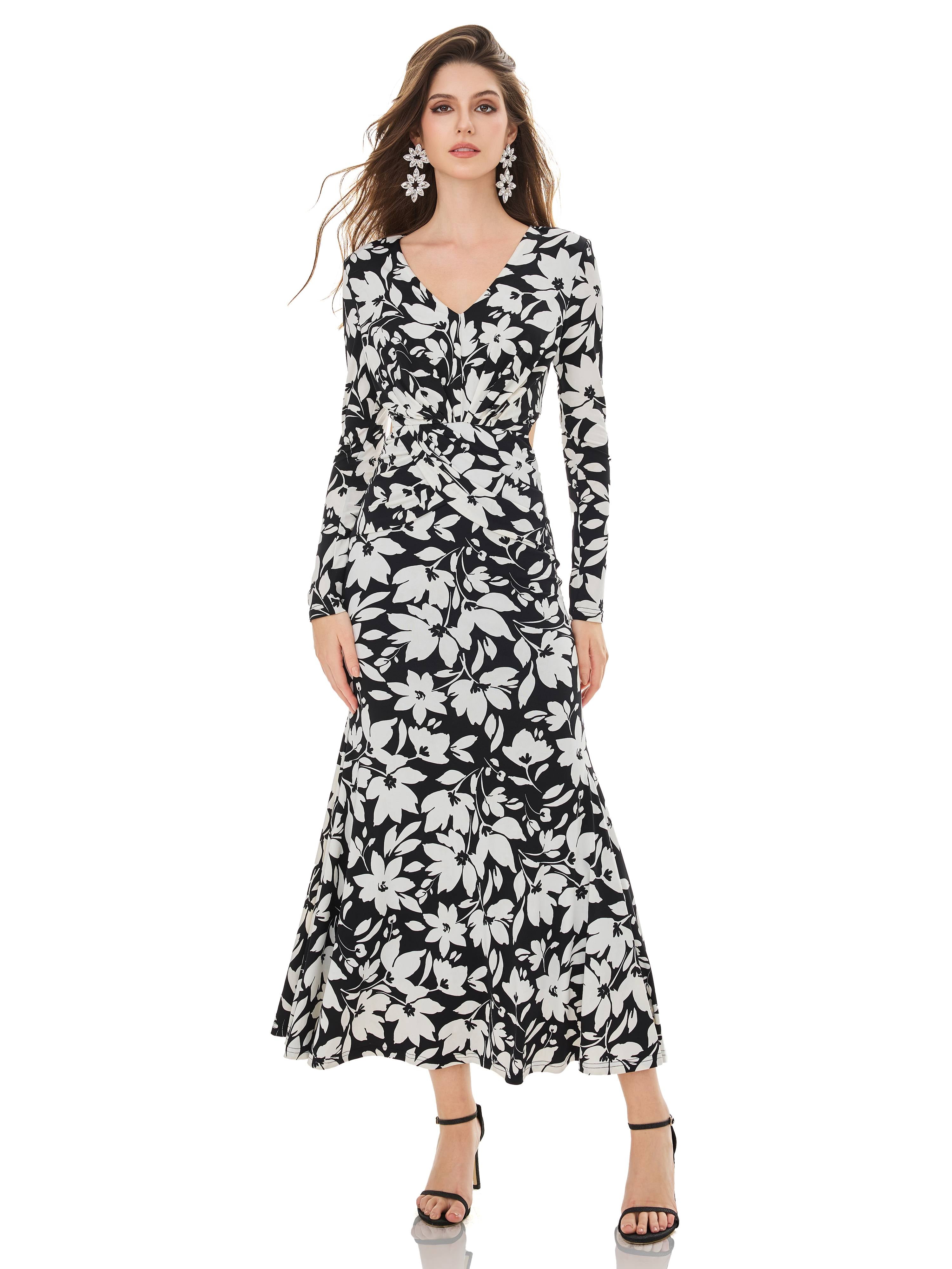 Float with grace. This striking floral dress flows beautifully with every step, making you feel sophisticated and effortlessly captivating.