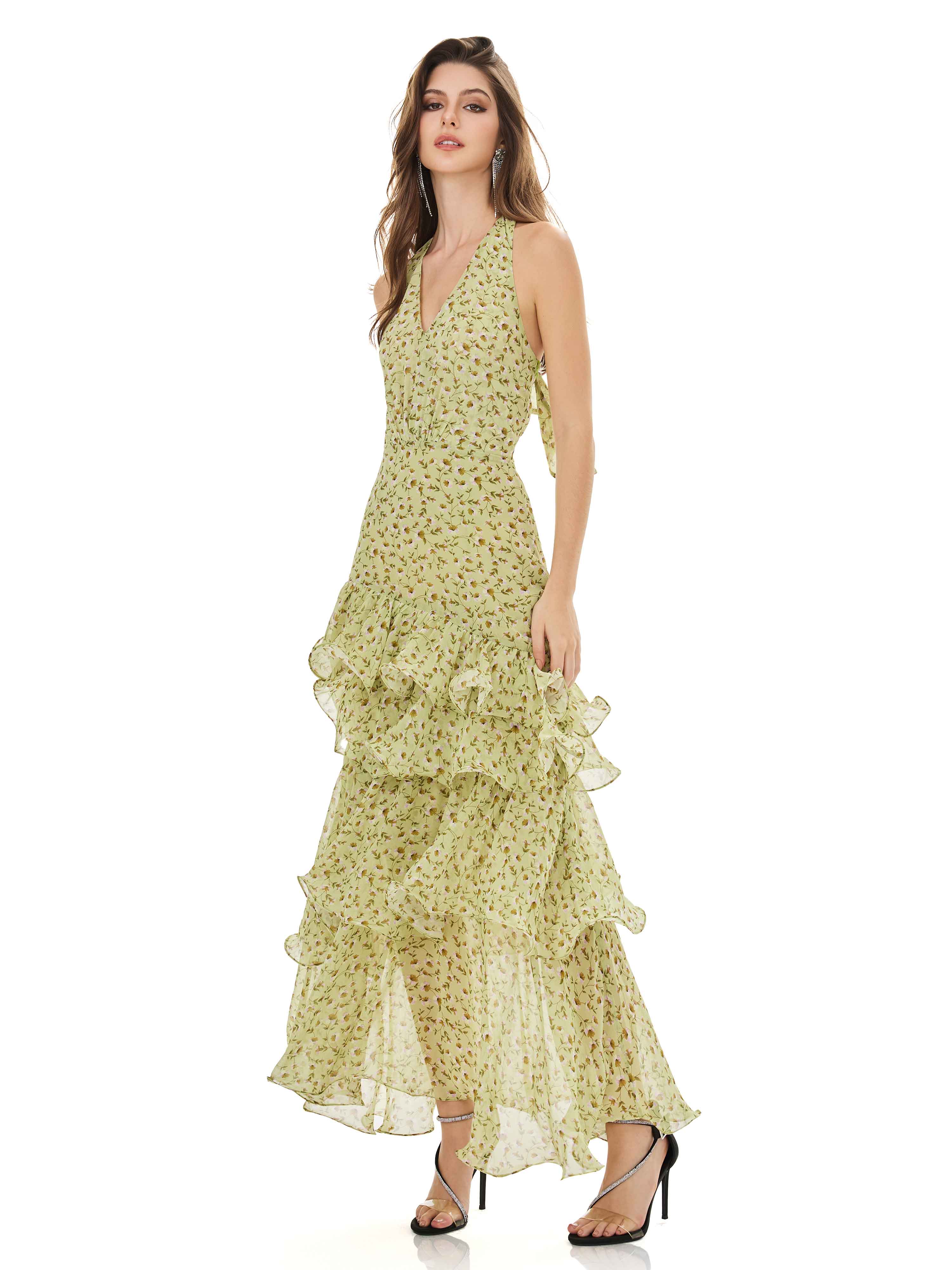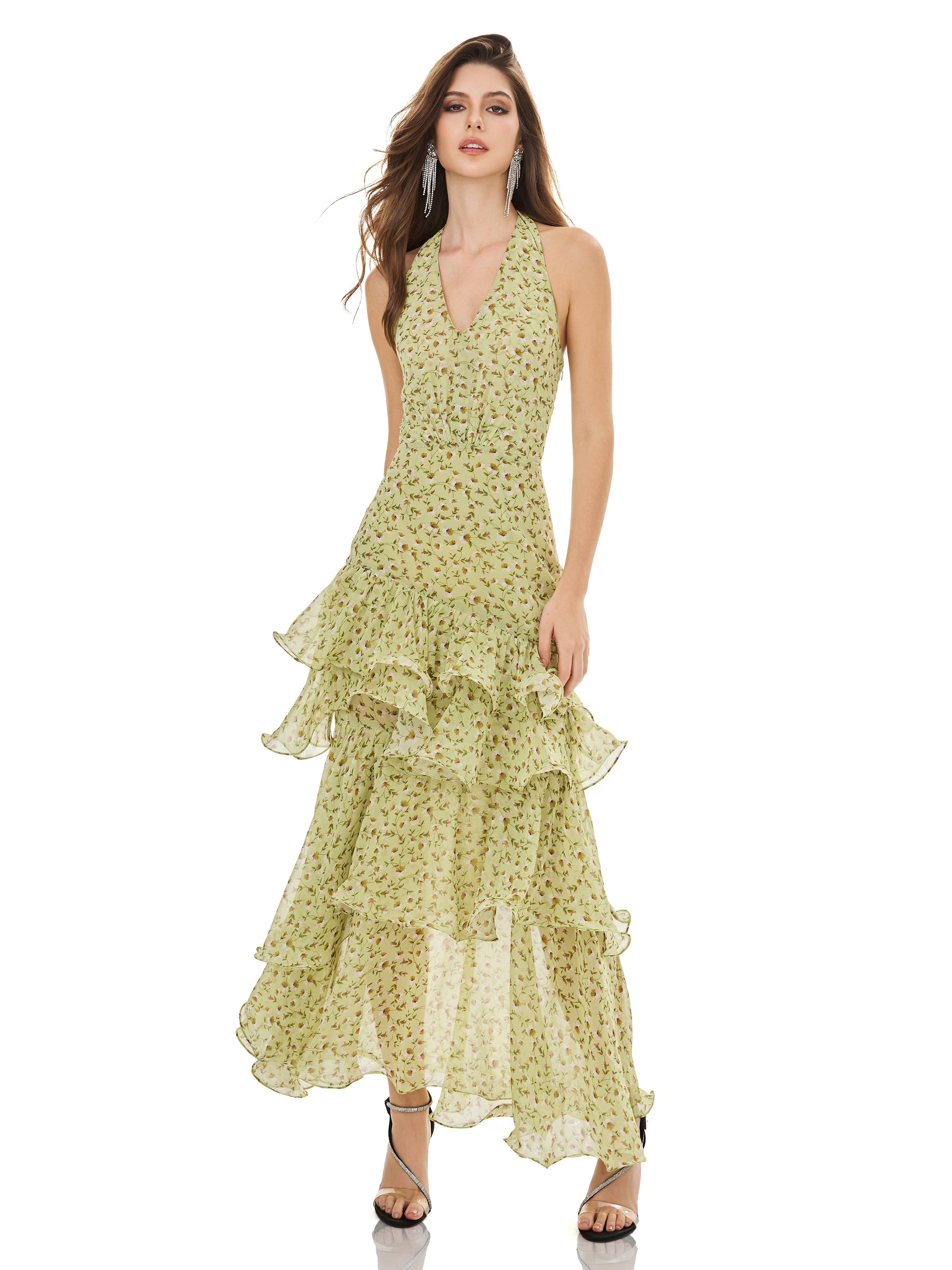 Bloom in romance. This dreamy tiered floral dress flows beautifully, perfect for making unforgettable memories.